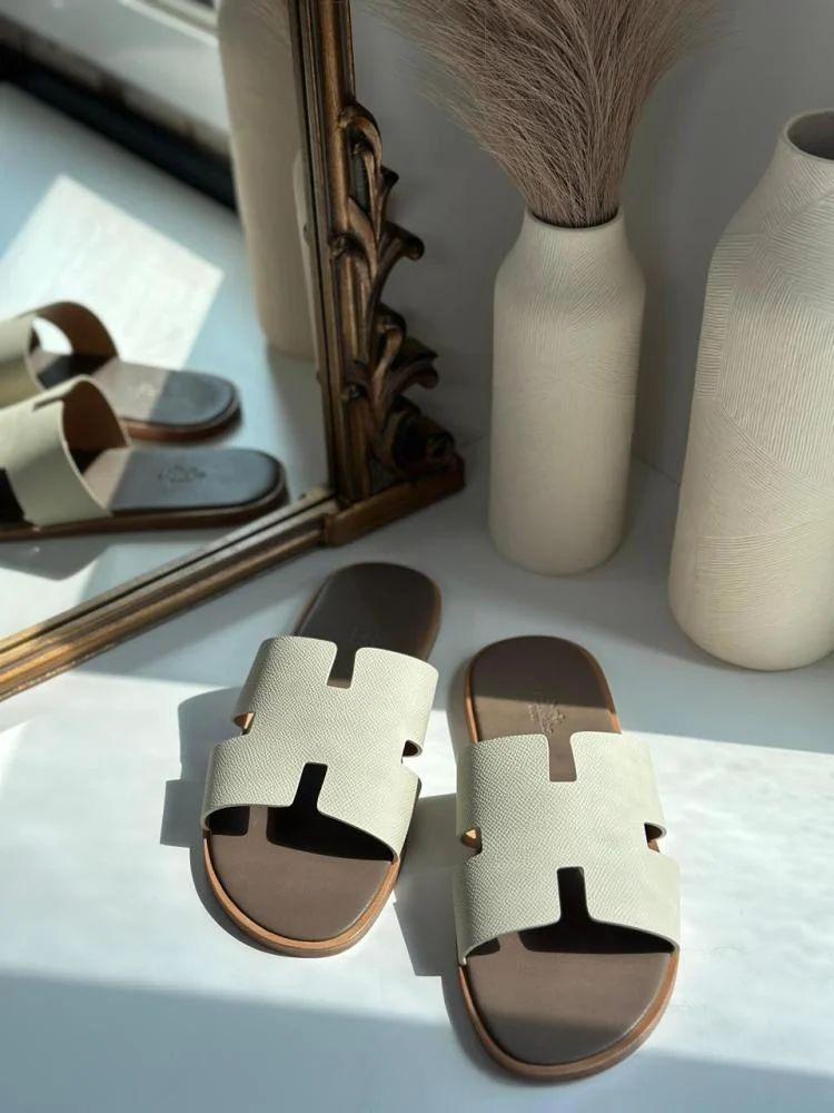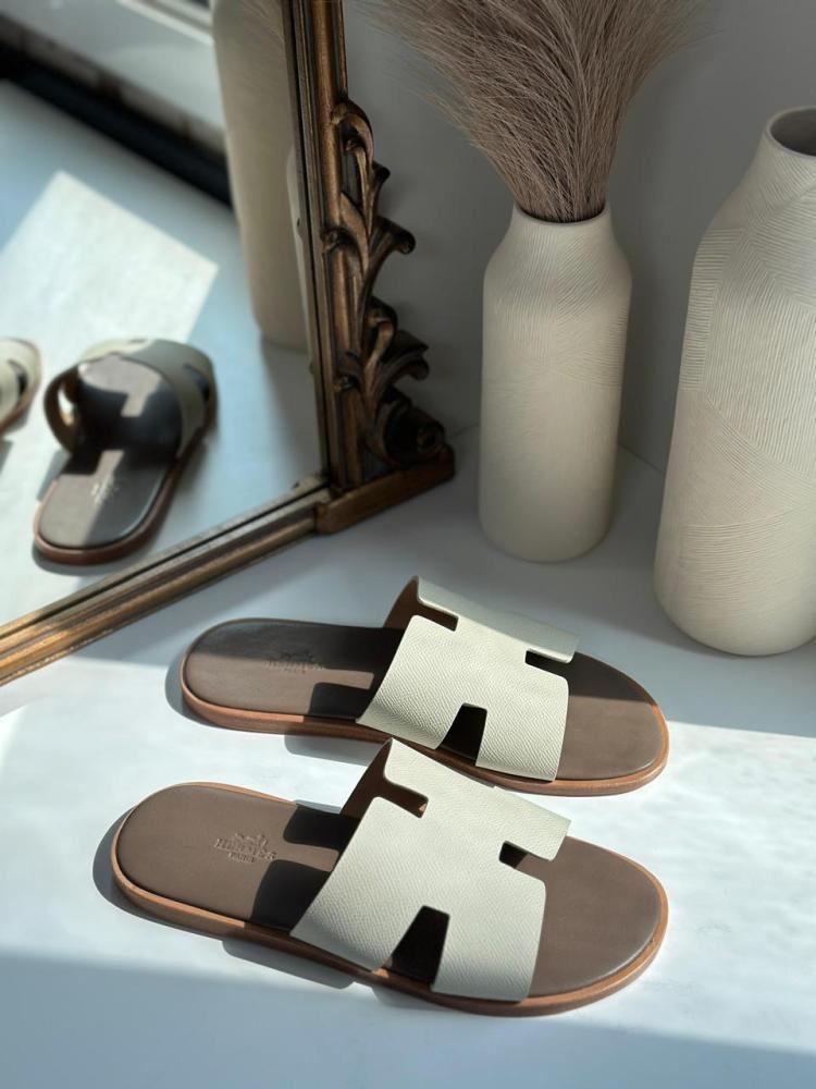 - التصميم: يأتي الصندل من هيرميس بتصميم عصري وفاخر، حيث يتميز برباطين جلديين مع تفاصيل معدنية دقيقة تعكس حرفية العلامة التجارية الفرنسية الشهيرة. التصميم بسيط ولكن فخم، مما يضمن لك إطلالة راقية في كل مرة ترتديه.