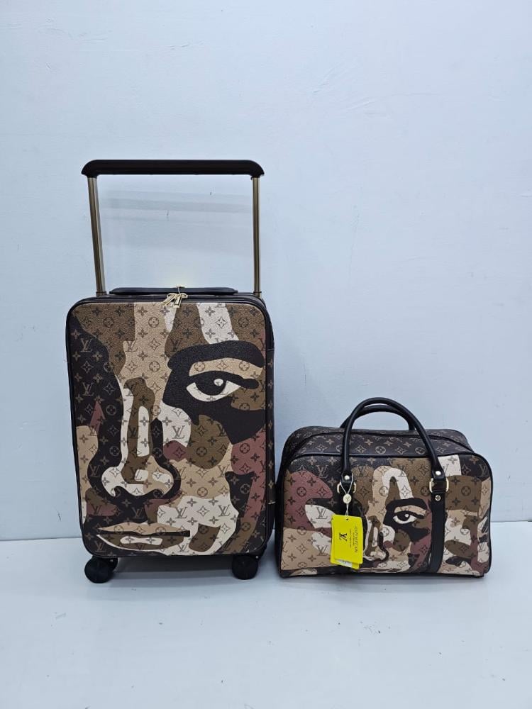 تحقيبة سفر فاخرة من دار الأزياء العالمية Louis Vuitton، تتميز بتصميمها الأيقوني المزين بالكامل بنقشة المونوغرام الكلاسيكية (LV) التي تغطي الحقيبة من جميع الجوانب، مما يمنحها طابعاً عصرياً ولافتاً للنظر. الحقيبة مثالية للسفر السريع أو كحقيبة يد للطائرة، وتجمع بين الأناقة والعملية في آنٍ واحد.