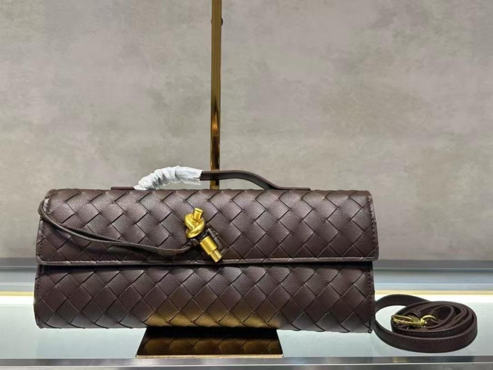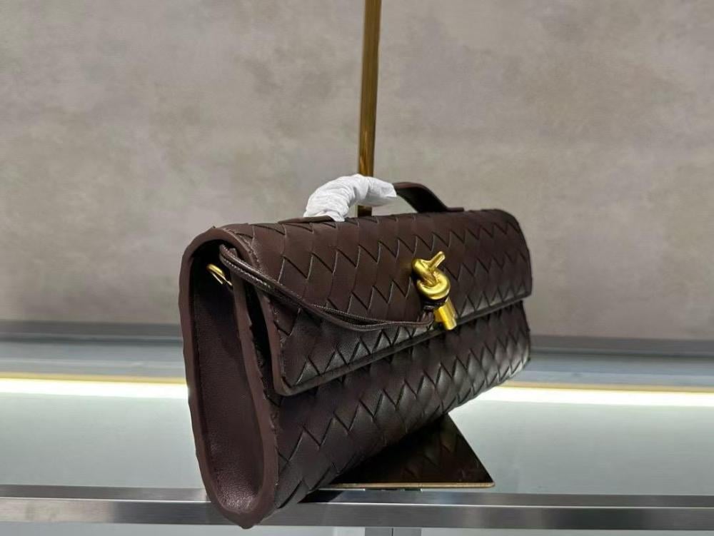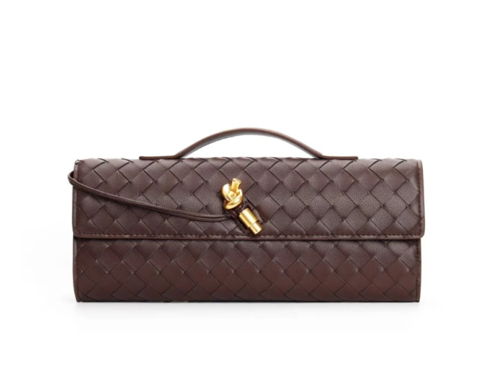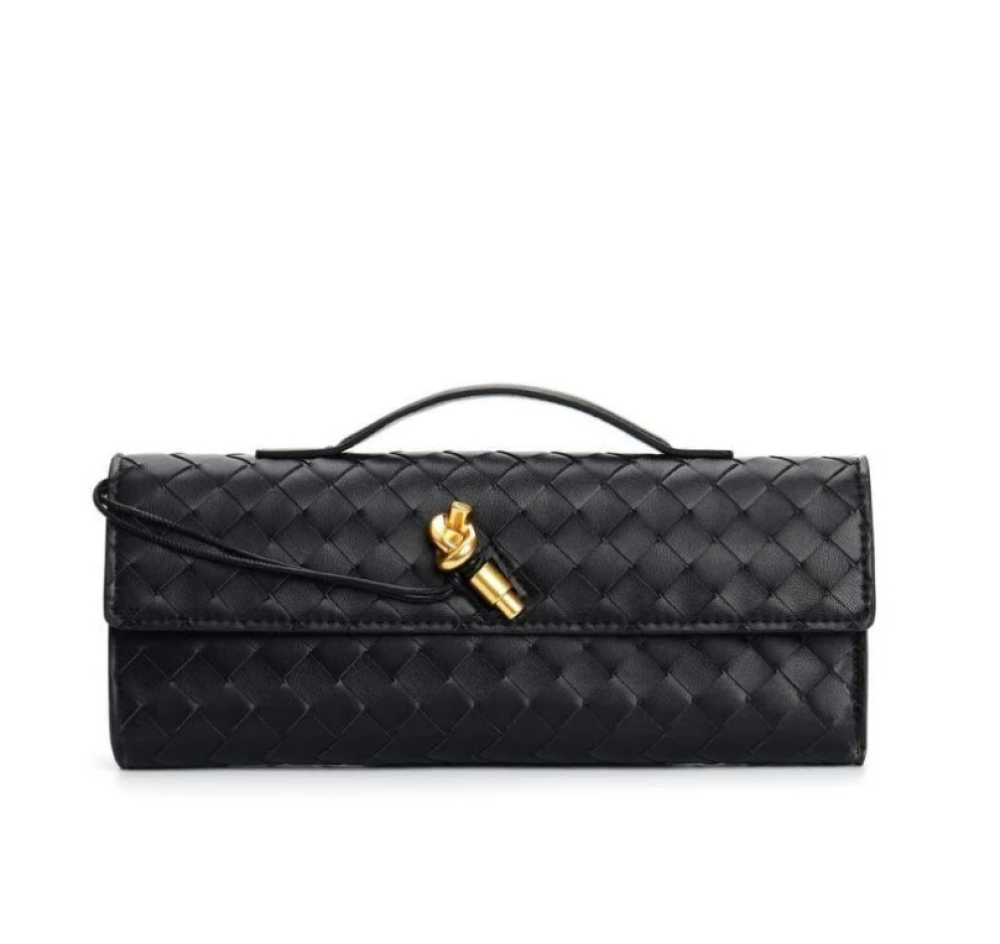تأتي حقيبة الكلاتش أنديامو لونغ من بوتيغا فينيتا مصنوعة بجلد العجل الخراف الناعم، تتميز بتصميم طويل البنية مع مقبض بنسيج متداخل وعقّدة معدنية للإغلاق وتكتمل بستة فتحات داخلية للبطاقات وجيب واحد إضافي.