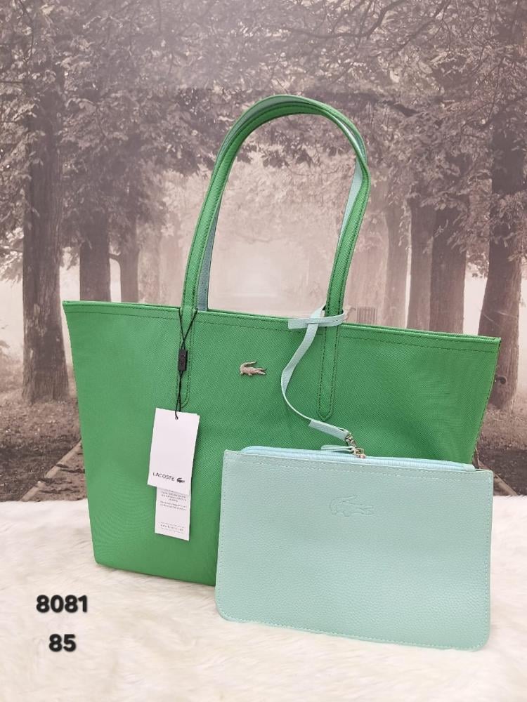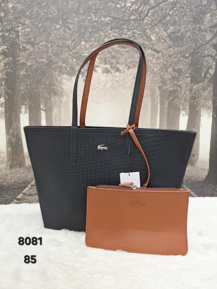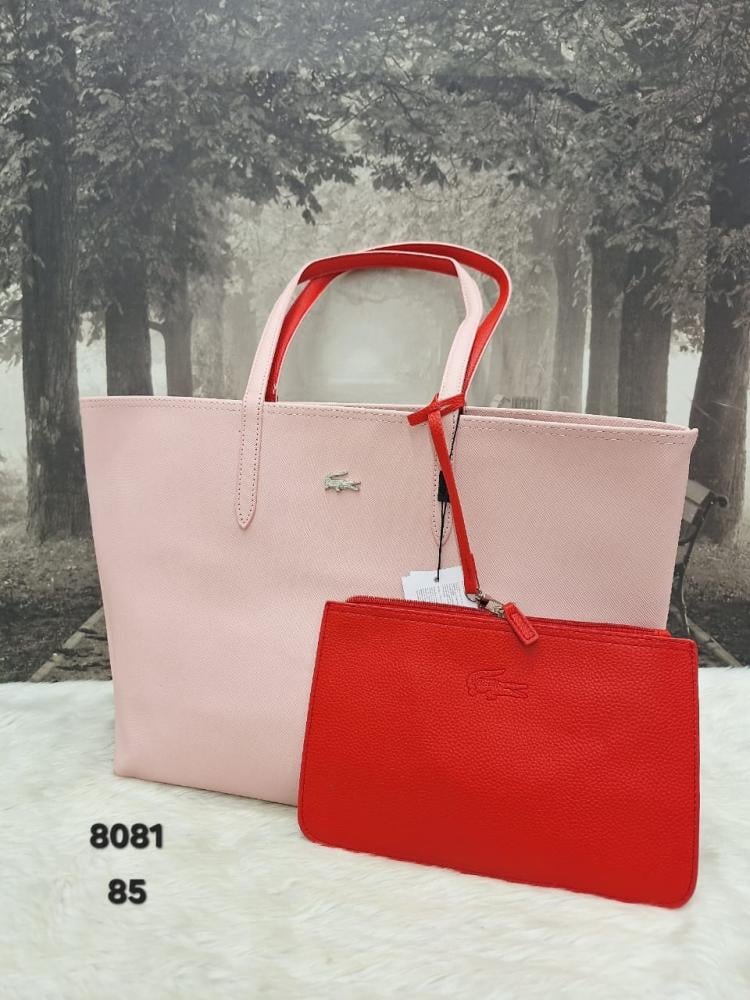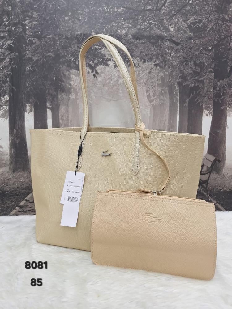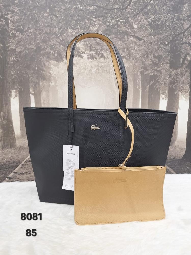 حقيبة توت قابلة للعكس، مصممة للحمل على الكتف، بلونين متباينين. تتسع الحقيبة لجهاز كمبيوتر محمول مقاس 15 بوصة، وتحتوي على جيب قابل للإزالة. تتميز الحقيبة بنقشة محببة على أحد الجانبين ونقشة بيكيه بارزة على الجانب الآخر، في إشارة إلى قميص بولو الأصلي L.12.12 الشهير.