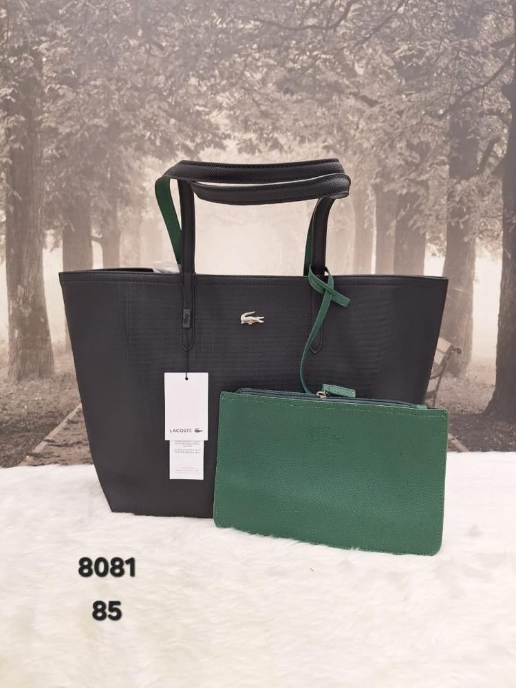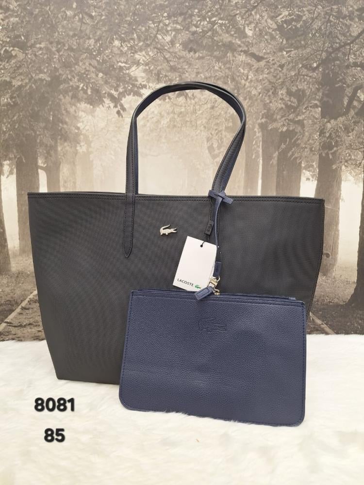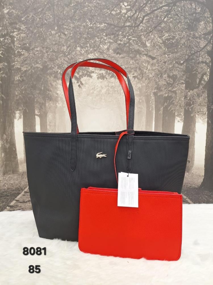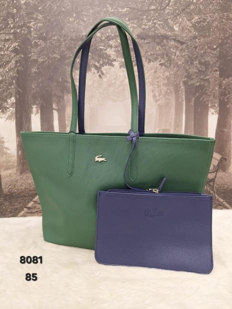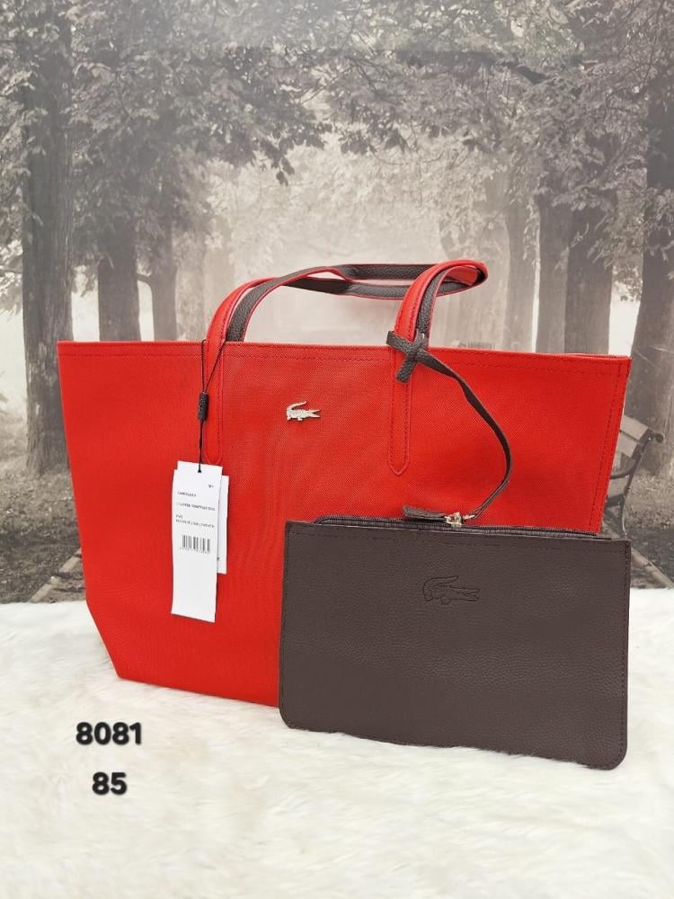 حقيبة توت قابلة للعكس، مصممة للحمل على الكتف، بلونين متباينين. تتسع الحقيبة لجهاز كمبيوتر محمول مقاس 15 بوصة، وتحتوي على جيب قابل للإزالة. تتميز الحقيبة بنقشة محببة على أحد الجانبين ونقشة بيكيه بارزة على الجانب الآخر، في إشارة إلى قميص بولو الأصلي L.12.12 الشهير.