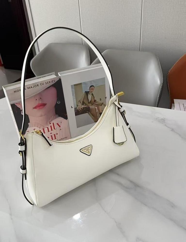 تأتي حقيبة الكتف آيمي الجلدية ضمن تشكيلة 2024 لبرادا بتصميم مستوحى من أزياء التسعينات البسيطة. تتميز ببنية مسترخية كبيرة الحجم من الجلد مع حزام كتف بأبازيم جانبية قابل للتعديل إلى حزام كروس، يكتمل التصميم بسلسلة مفاتيح قابلة للفصل، شعار العلامة المطلي بالمينا وبنية داخلية مبطنة بجلد النابا تتضمن جيبين وجيب آخر بسحّاب.